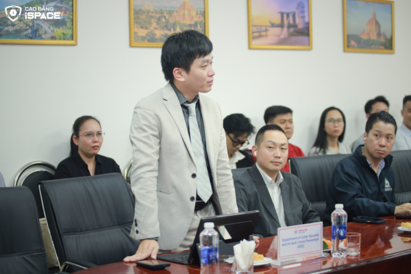 Trao đổi về công tác đào tạo, ThS. Lê Hoàng Bình Nguyên – Phó Hiệu trưởng iSPACE đã giới thiệu chi tiết về chương trình đào tạo của Nhà trường. Với triết lý đào tạo thực chiến, iSPACE tập trung vào việc trang bị kỹ năng xử lý sự cố thực tế và các công nghệ bảo mật tiên tiến cho sinh viên.